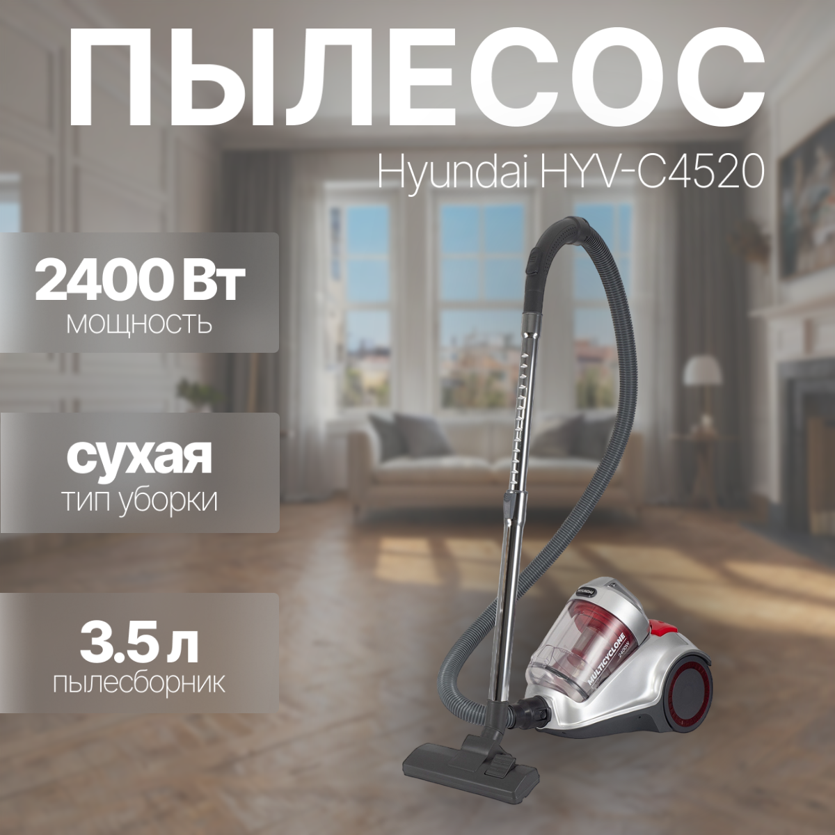 Пылесос Hyundai HYV-C4520, 2400Вт, серебристый
