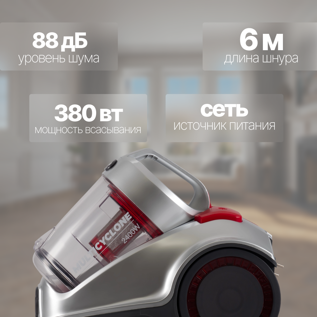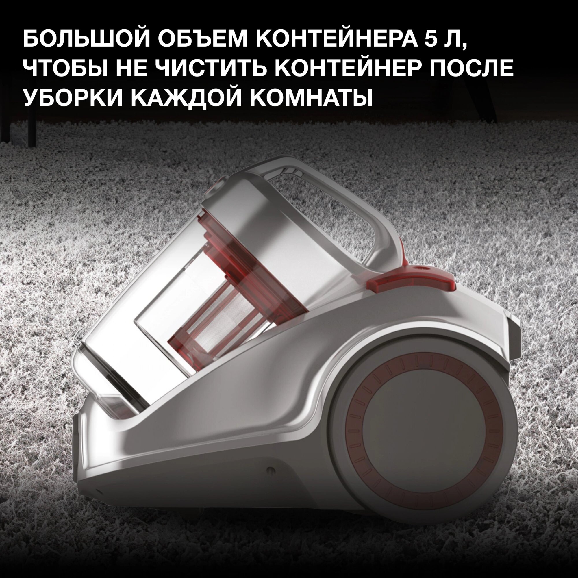 Пылесос HYUNDAI HYV-C4570, серебристо-красный, 2400W/380W