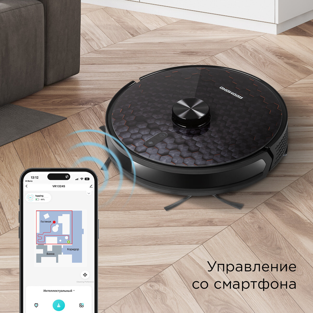 Умный робот-пылесос REDMOND VR1324S WiFi, сухая и влажная уборка, самоочистка на станции интересное: