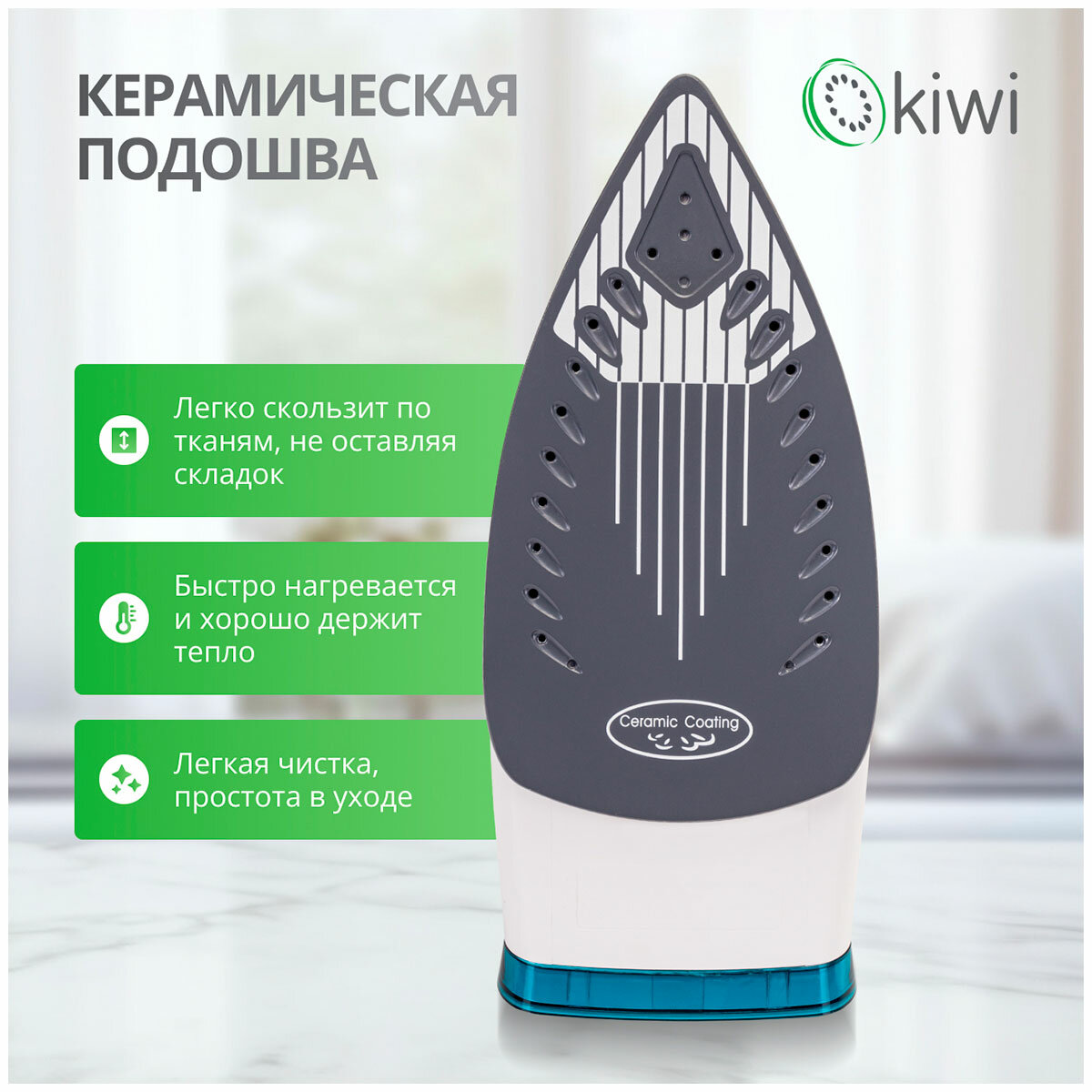 Утюг с отпаривателем, с керамической подошвой и функцией самоочистки KIWI KSI-6319C мощность 2000 Вт