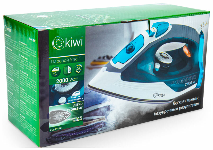 Утюг с отпаривателем, с керамической подошвой и функцией самоочистки KIWI KSI-6319C мощность 2000 Вт