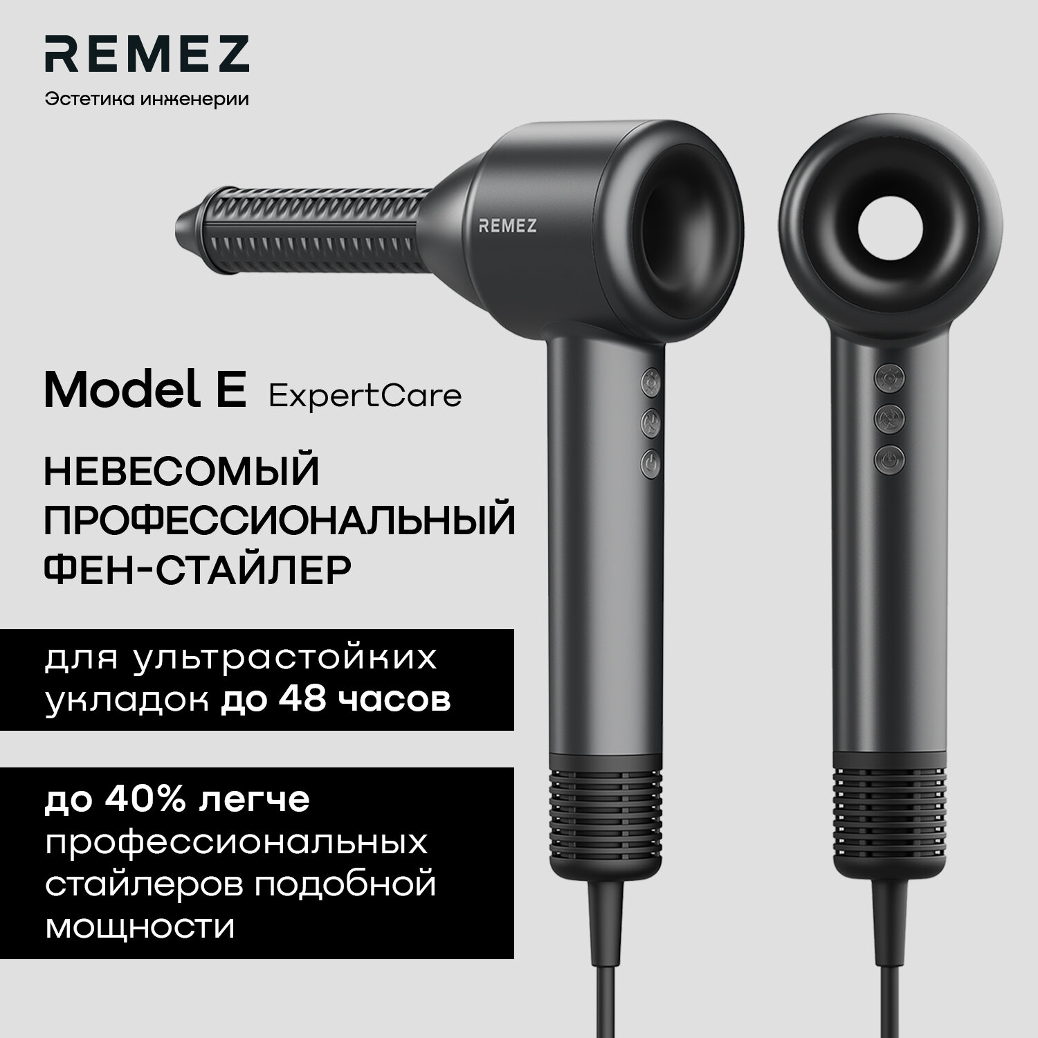 Фен-Стайлер REMEZ Model Е RMB-701 для волос с магнитными насадками в комплекте интересное: