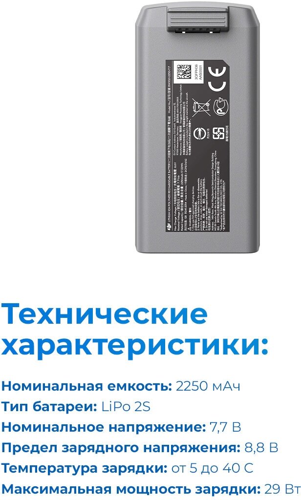 | Комплектация | Аккумулятор для DJI Mini 2 Intelligent Flight Battery – 1 шт. |