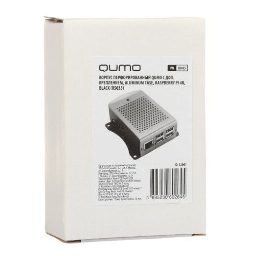 Купить Корпус перфорированный Qumo с доп.креплением, Aluminum Case, Raspberry Pi 4B, black(RS035) RS035
