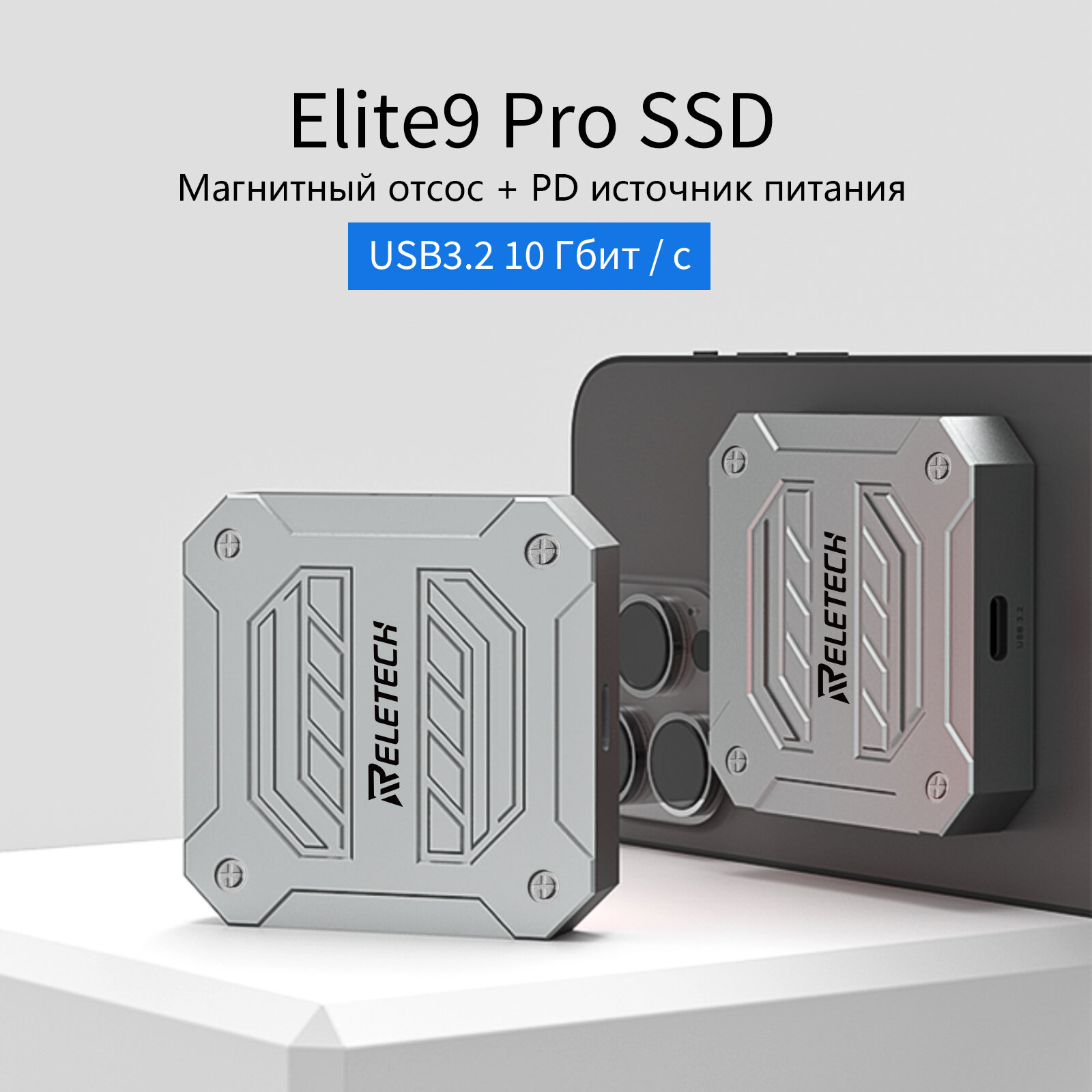 Reletech Elite9 Pro 1ТБ магнитный портативный SSD, сверхбыстрая зарядка 100 Вт, OTG совместим с iPhone 15, USB C смартфоны, планшеты, ноутбуки
