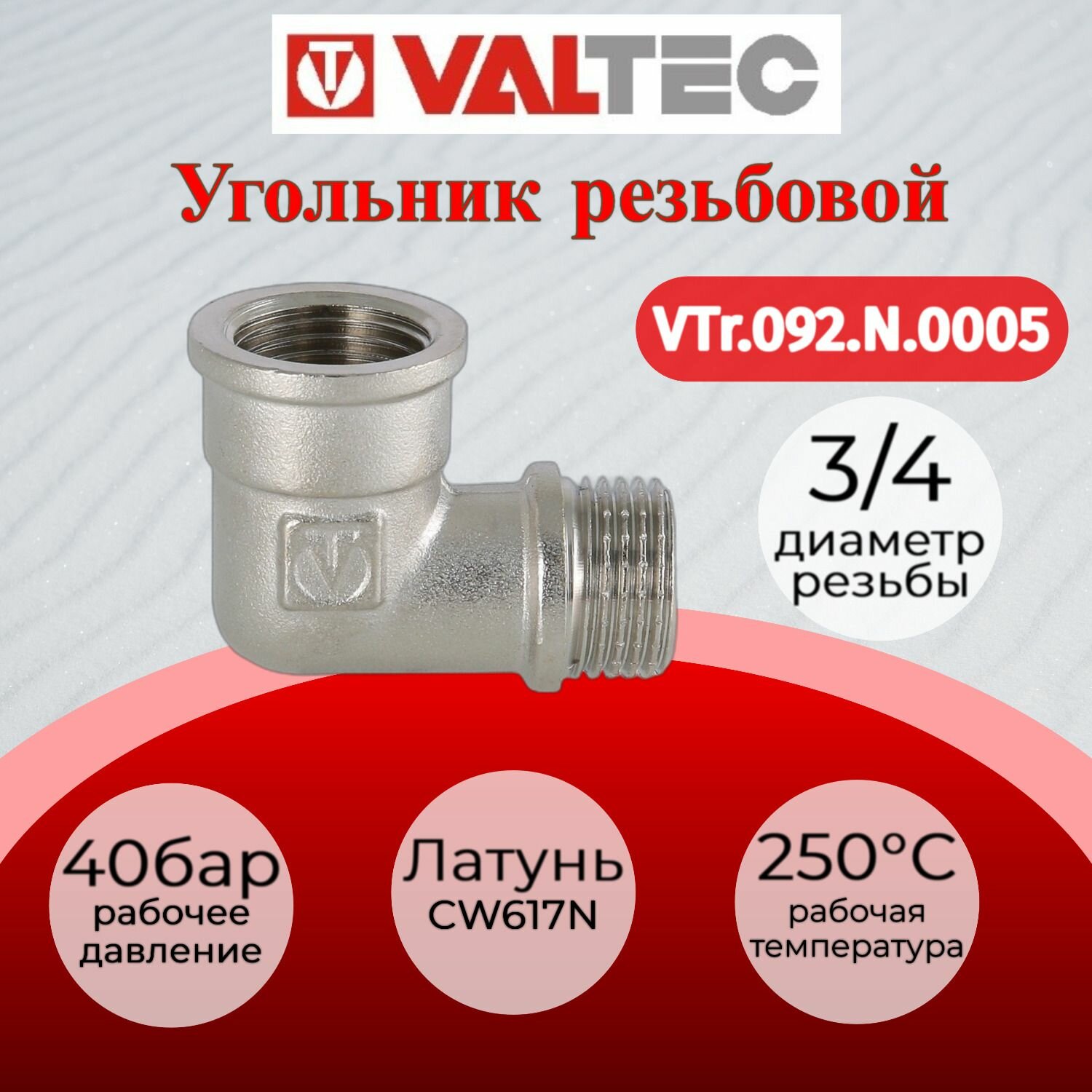Угольник латунь никелированная VALTEC 3/4"