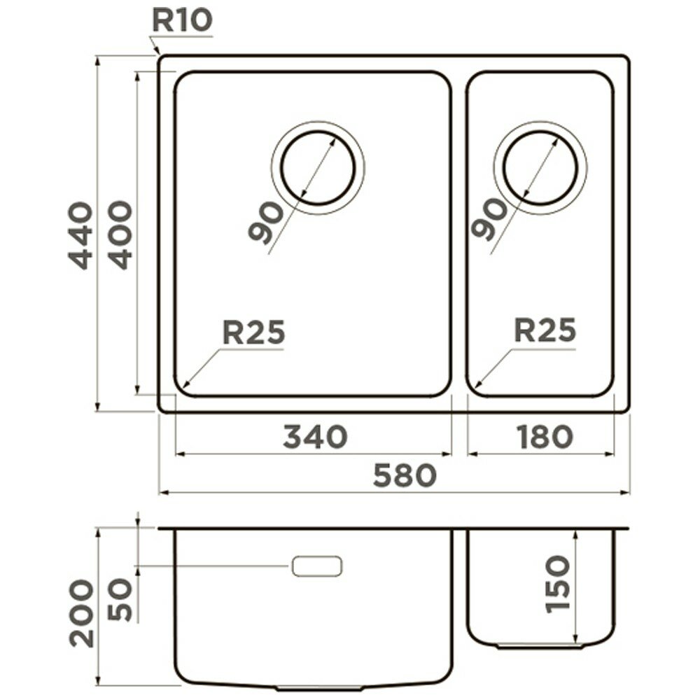 Кухонные мойки Omoikiri Мойка Tadzava отверстия для смесителя-отсутствуют чаши-2 большая чаша-слева цвет-нержавеющая сталь (4993774)