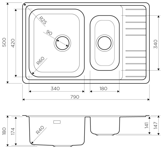 Мойка кухонная Omoikiri Sagami 79-2-IN 4993733 SUS304, нержавеющая сталь OMOIKIRI SAGAMI