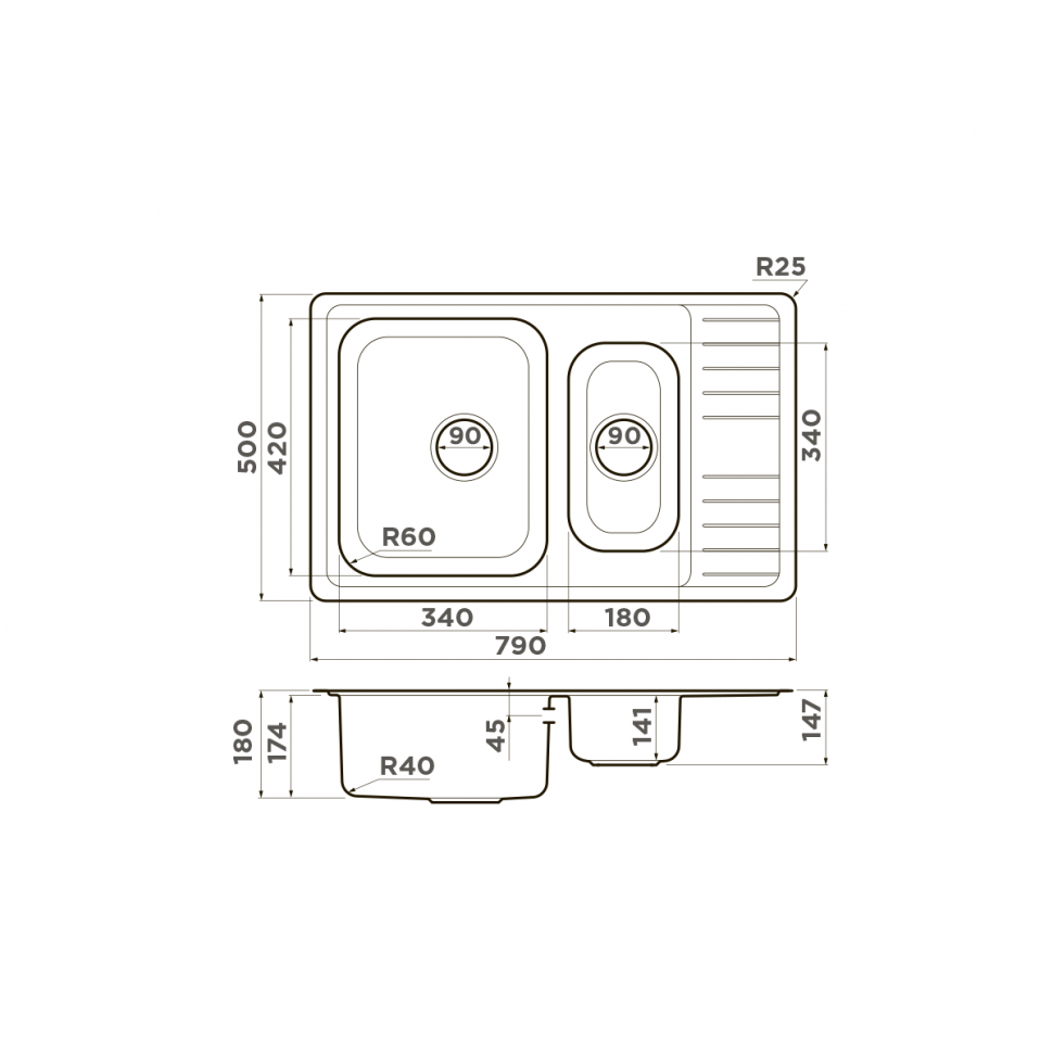 Мойка кухонная Omoikiri Sagami 79-2-IN 4993733 SUS304, нержавеющая сталь OMOIKIRI SAGAMI