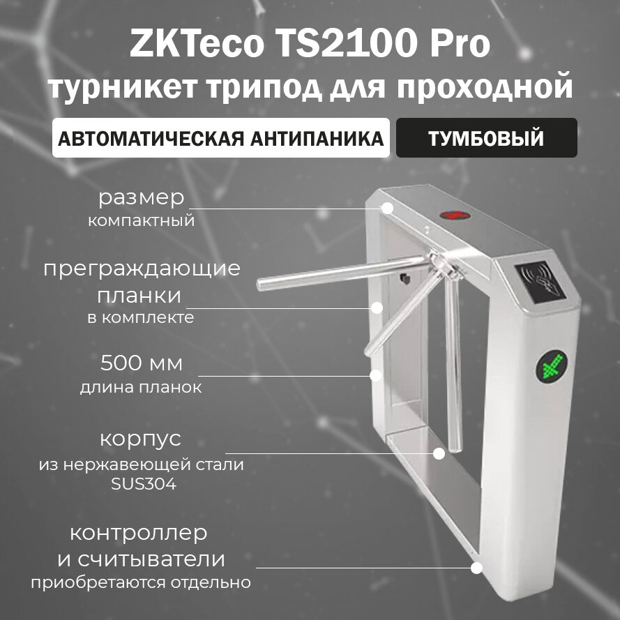 ZKTeco TS2100 тумбовый турникет-трипод для проходной с автоматическими планками Антипаника (контроллер СКУД и считыватели приобретаются отдельно) интересное: