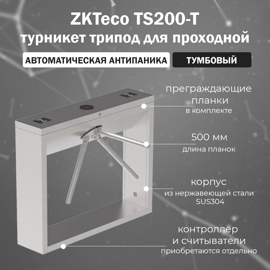 ZKTeco TS200-T - тумбовый турникет-трипод с автоматической Антипаникой (контроллер СКУД и считыватели приобретаются отдельно) интересное: