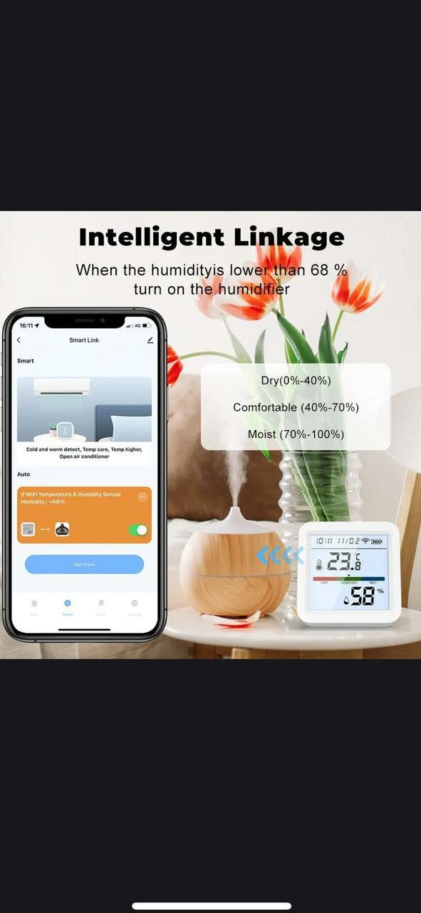 Умный датчик температуры и влажности.с дисплеем .WI FI Tuya smart. С Алисой через интеграцию .климат контроль.+Батарейки ! интересное: