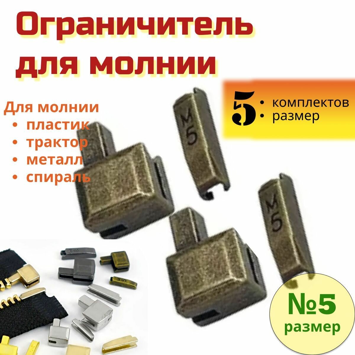 Комплект для ремонта молнии, нижний ограничитель, стоппер, размер 5, бронза интересное: