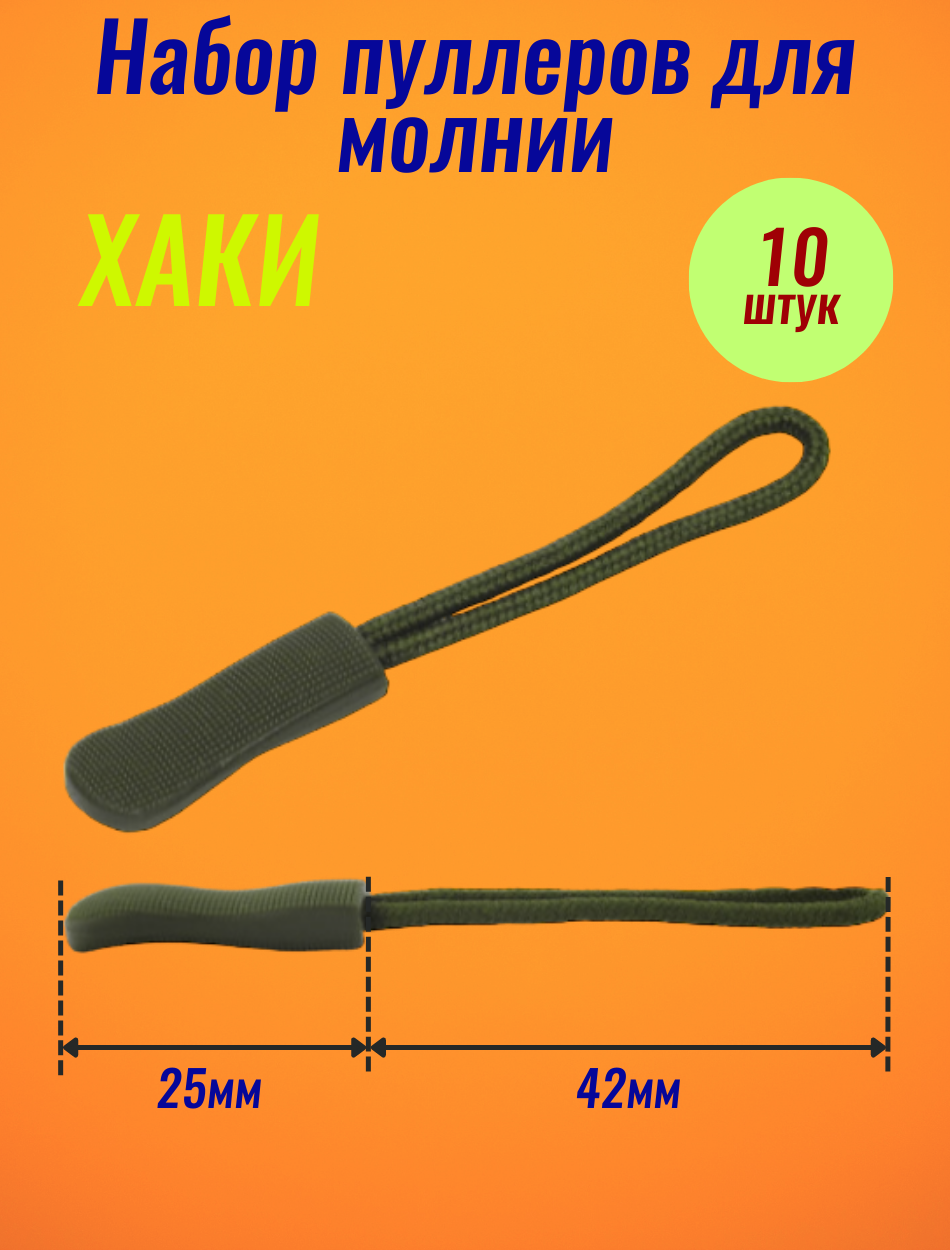 Пуллер Шовмаркет №8, съемный, для бегунка, черный, хаки, комплект 10шт
