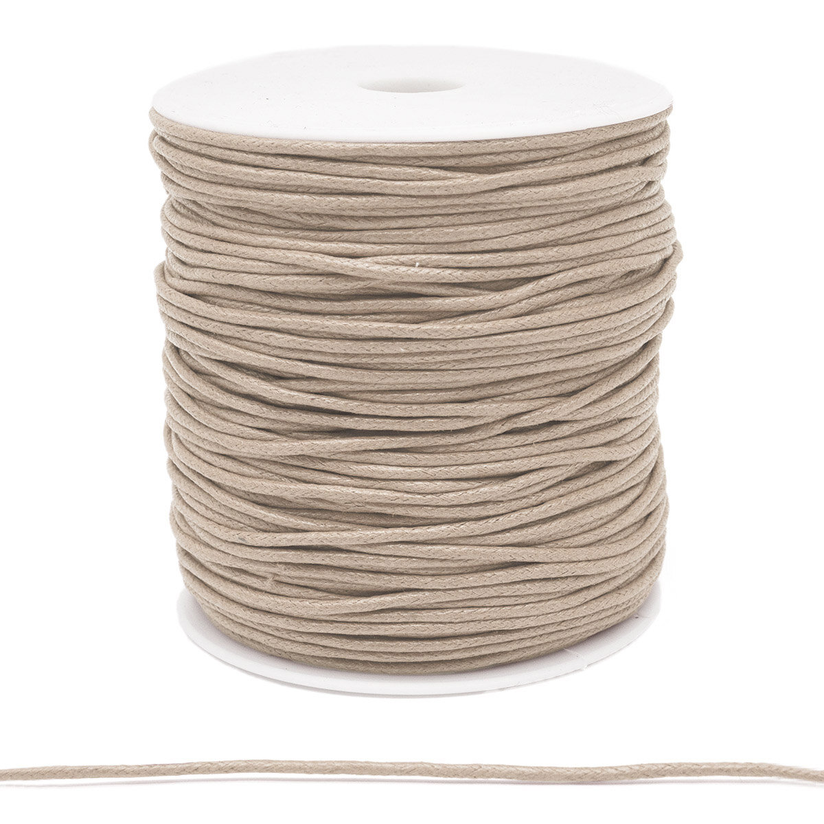 Шнур вощеный 2мм*100м, декоративный, светло-бежевый, хлопок, Айрис