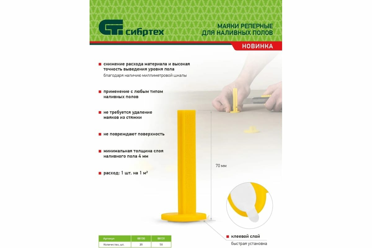 Маяки реперные для наливных полов Сибртех 20 шт. с клеевым слоем 88130 интересное: