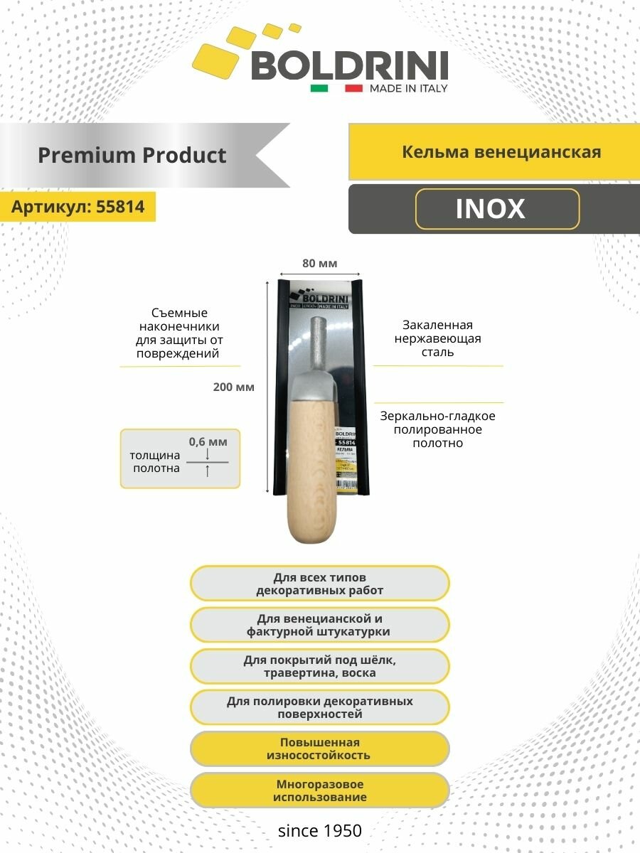 Кельма венецианская для декоративной штукатурки Inox Boldrini 200х80 мм из стали