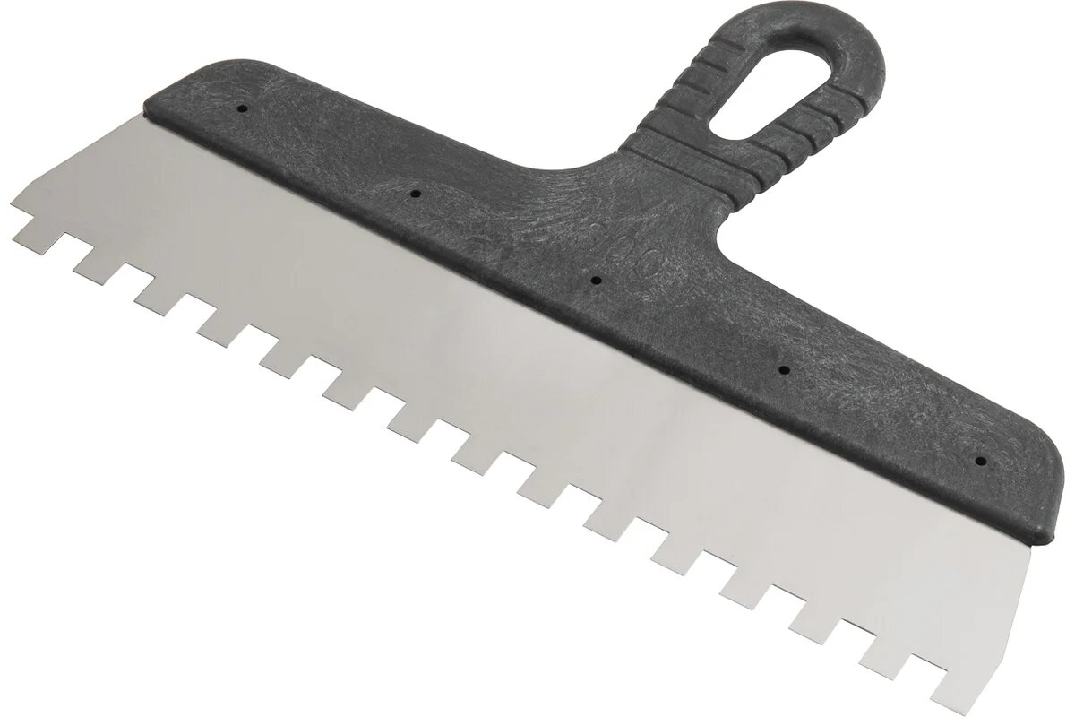 Купить Зубчатый шпатель КЭС 10x10 мм, нержавеющая сталь, пластиковая рукоятка, 300 мм 10000056