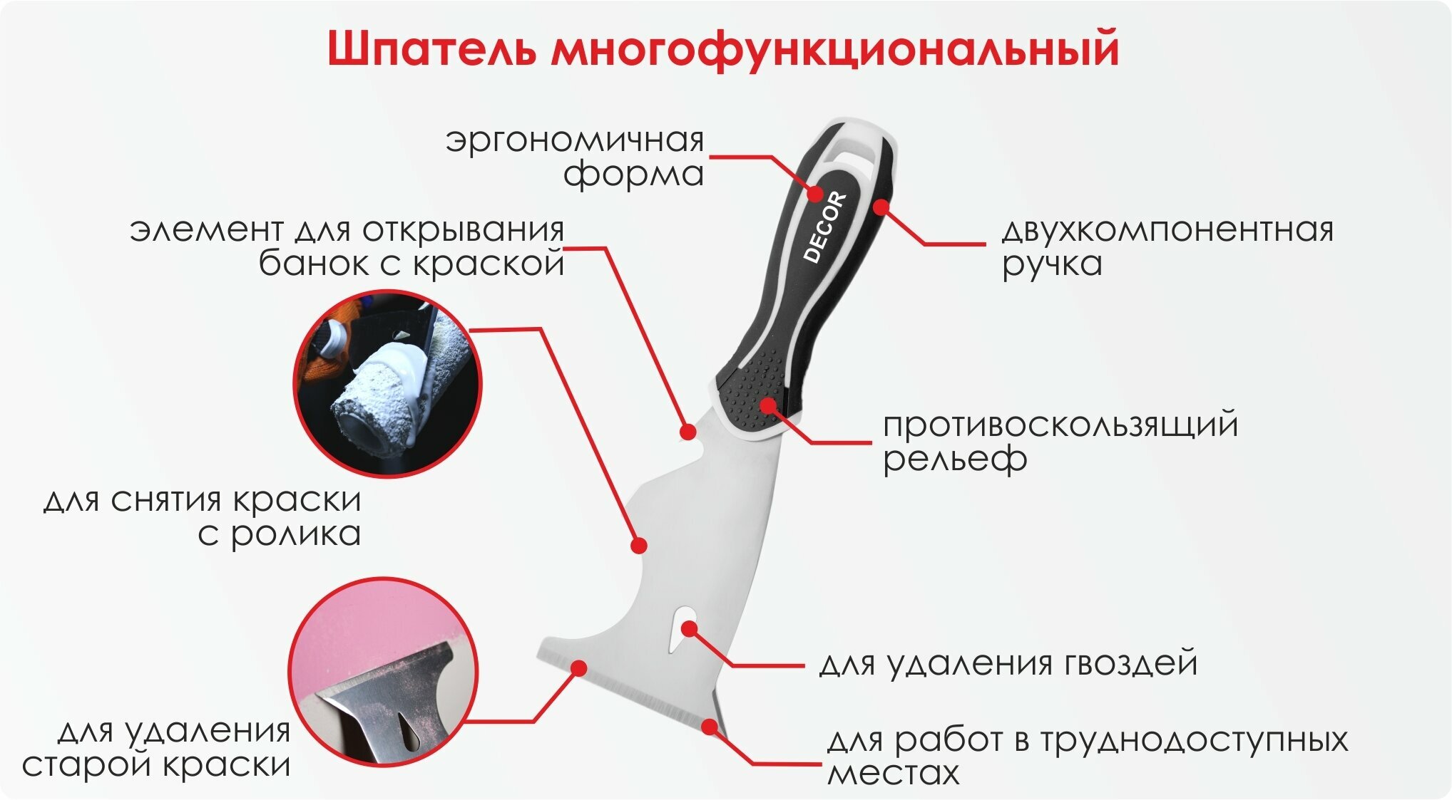 Шпатель строительный многофункциональный 76мм, 2-х комп. ручка, нерж.сталь DEСOR интересное: