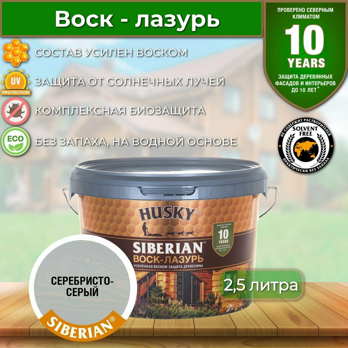 Купить Хаски / Воск-лазурь для древесины, пропитка антисептик для дерева, декоративно-защитный состав HUSKY SIBERIAN серебристо-серый (2,5л)