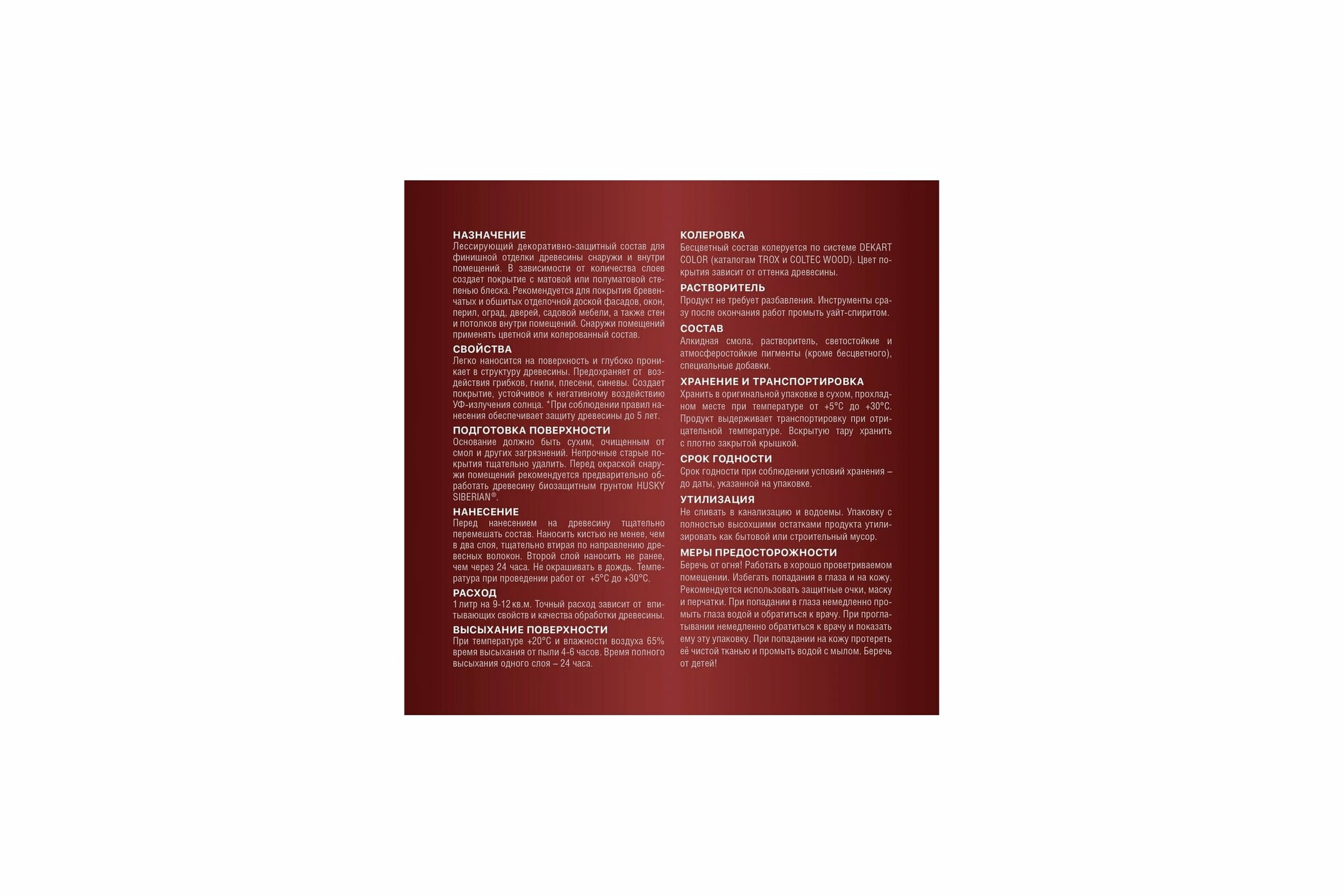 HUSKY SIBERIAN Пропитка для дерева полуматовая красное дерево* (9л)