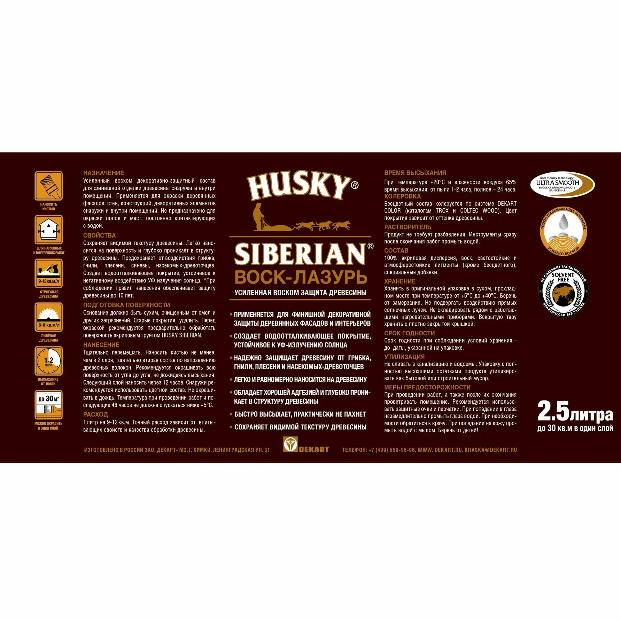Купить HUSKY SIBERIAN Воск-Лазурь акриловый антисептик для древесины полуматовый кедр 2,5л 30000