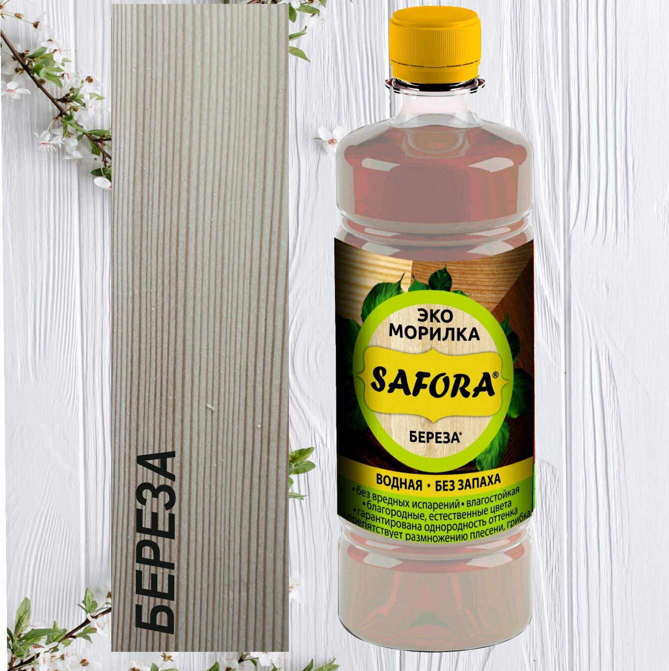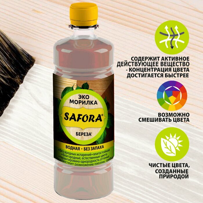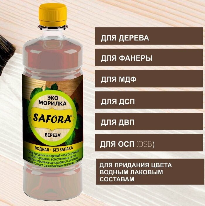 Морилка для дерева SAFORA, 0,5 литра, береза, быстросохнущая без запаха. интересное: