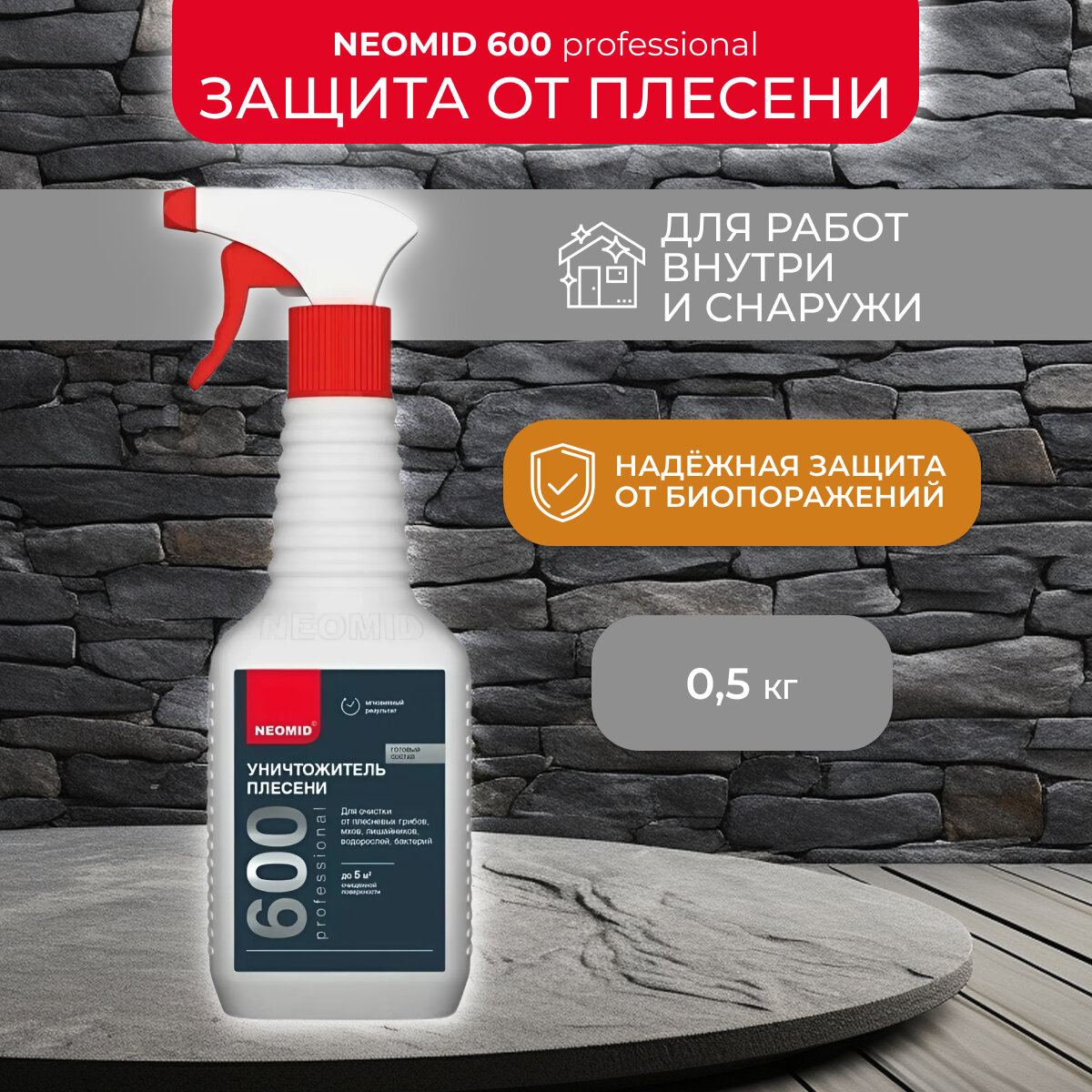 Пропитка Neomid, Антиплесень 600, для минеральных поверхностей, 0.5 л, Н-600-0,5/гот/тр.