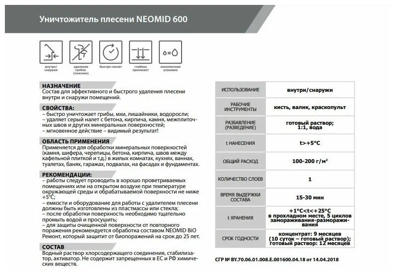 Уничтожитель плесени Neomid 600 концентрат 1:1 (1кг)