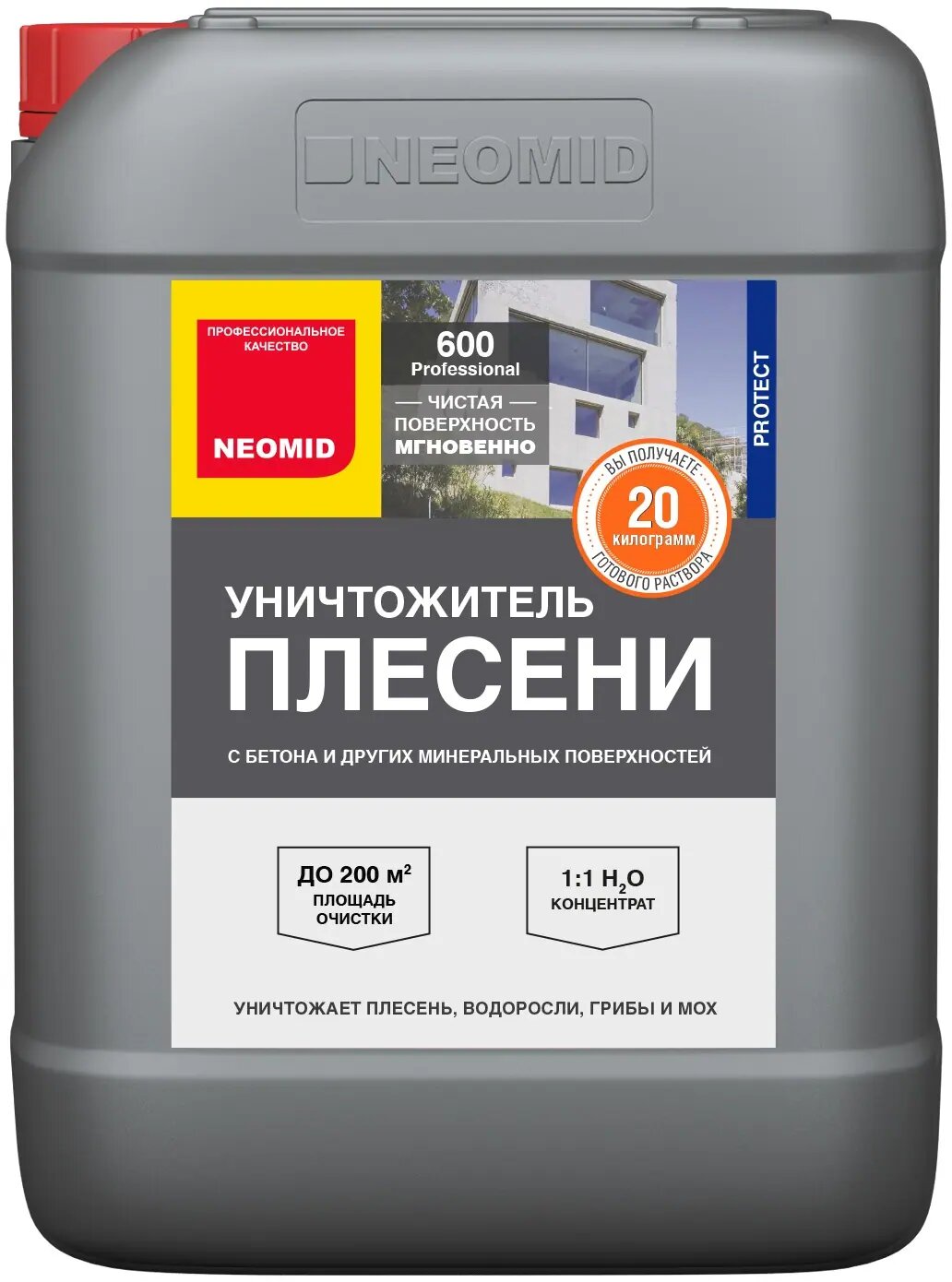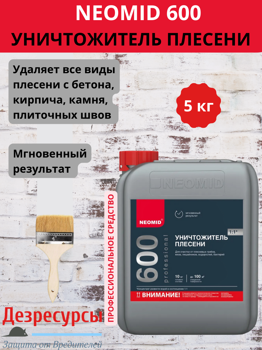 Средство антиплесень, NEOMID 600, Концентрат 1:1, (5 кг) / Для удаления плесени с кирпича, бетона, камня, плитки