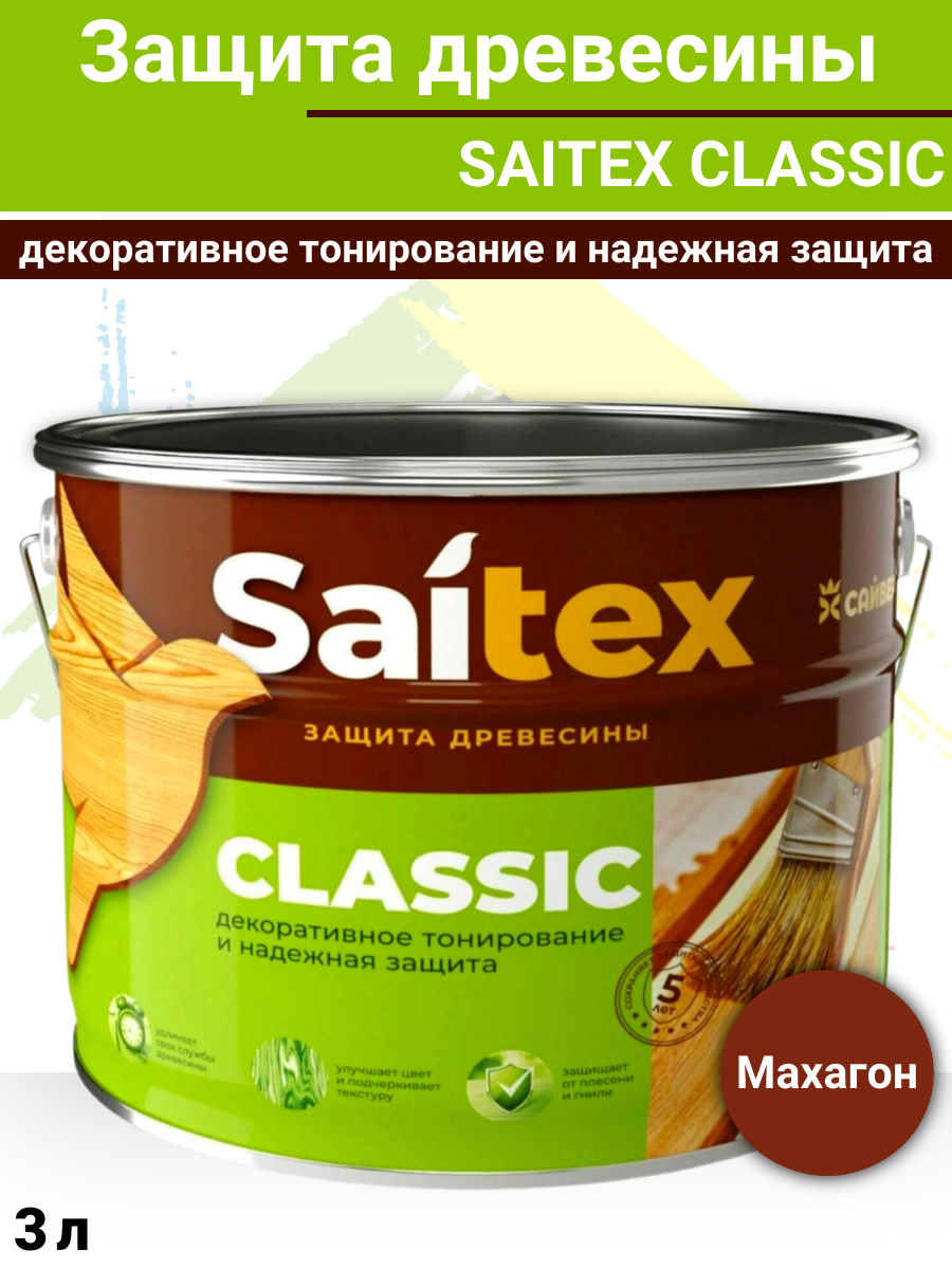 Пропитка, защита для дерева SAITEX CLASSIC / Сайтекс классик (махагон) 3л