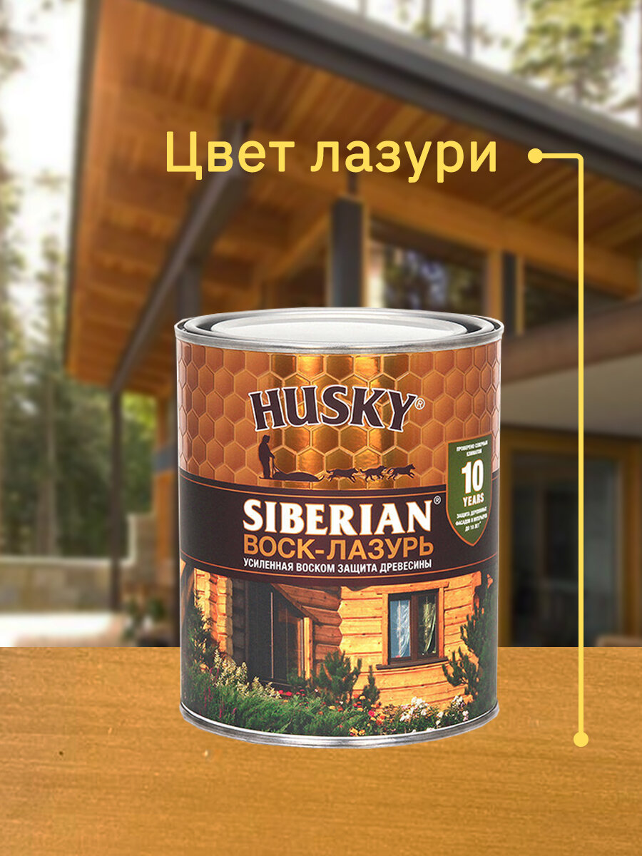 Воск-лазурь декоративно-защитный состав для древесины husky siberian 0,9л бесцветный