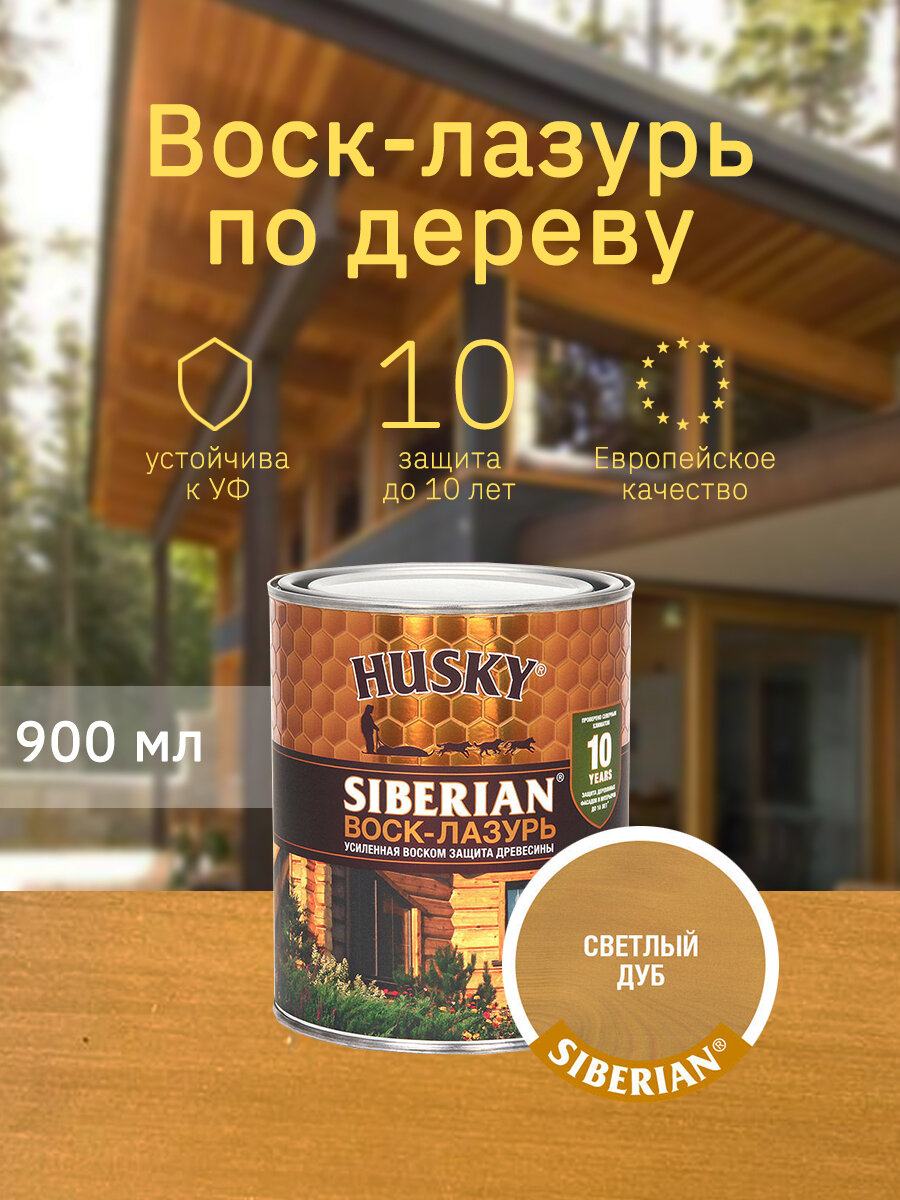 HUSKY SIBERIAN Воск-лазурь декоративно-защитный состав для древесины светлый дуб (0,9л)