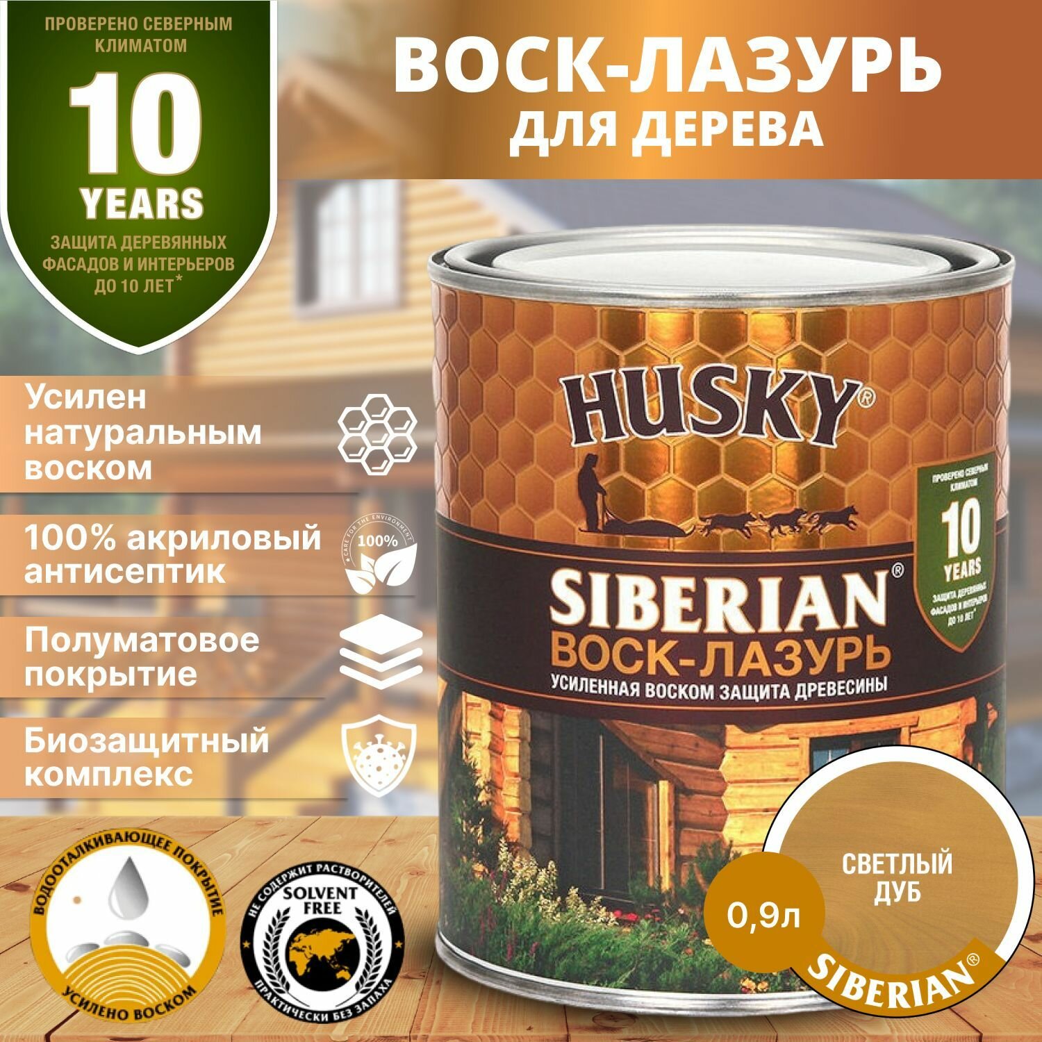 Купить Хаски / Воск-лазурь для древесины, пропитка антисептик для дерева, декоративно-защитный состав HUSKY SIBERIAN светлый дуб (0,9л)