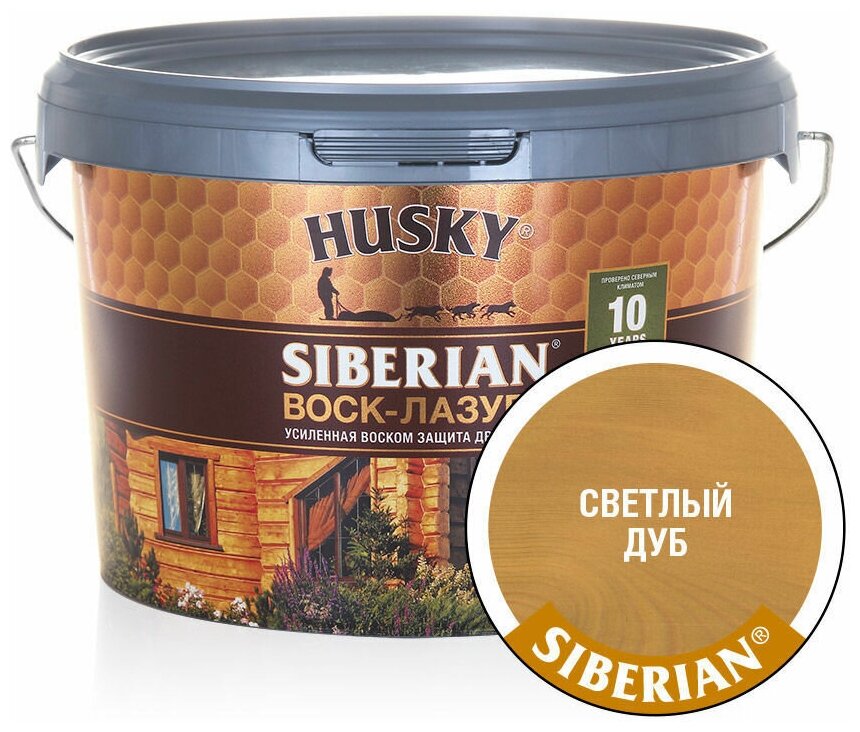 HUSKY SIBERIAN Воск-лазурь декоративно-защитный состав для древесины светлый дуб (9л)