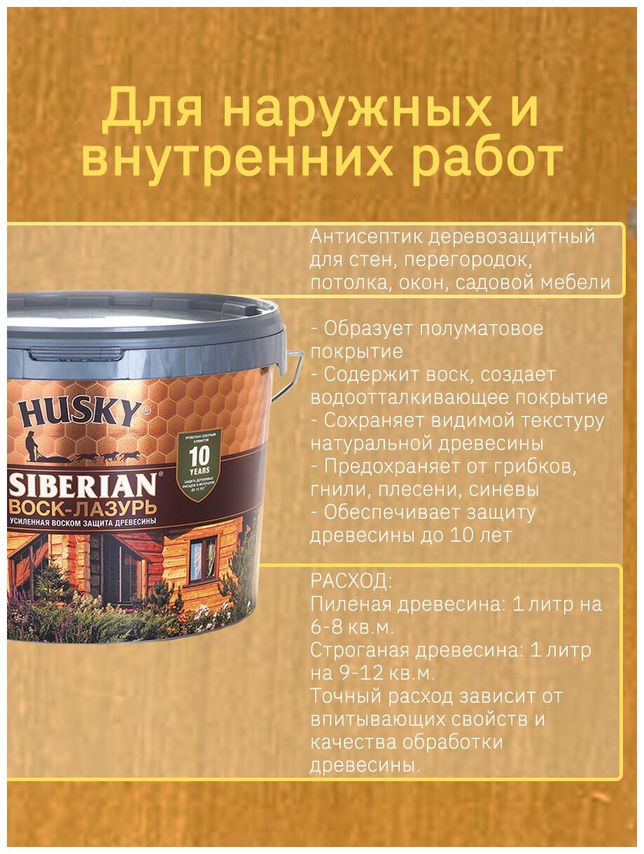 СохранитьХаски / Воск-лазурь для древесины, пропитка антисептик для дерева, декоративно-защитный состав HUSKY SIBERIAN светлый дуб (2,5л) интересное: