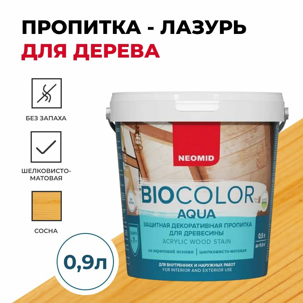 Пропитка защитная для древесины Neomid Bio Color Aqua полуматовая (0,9л) сосна