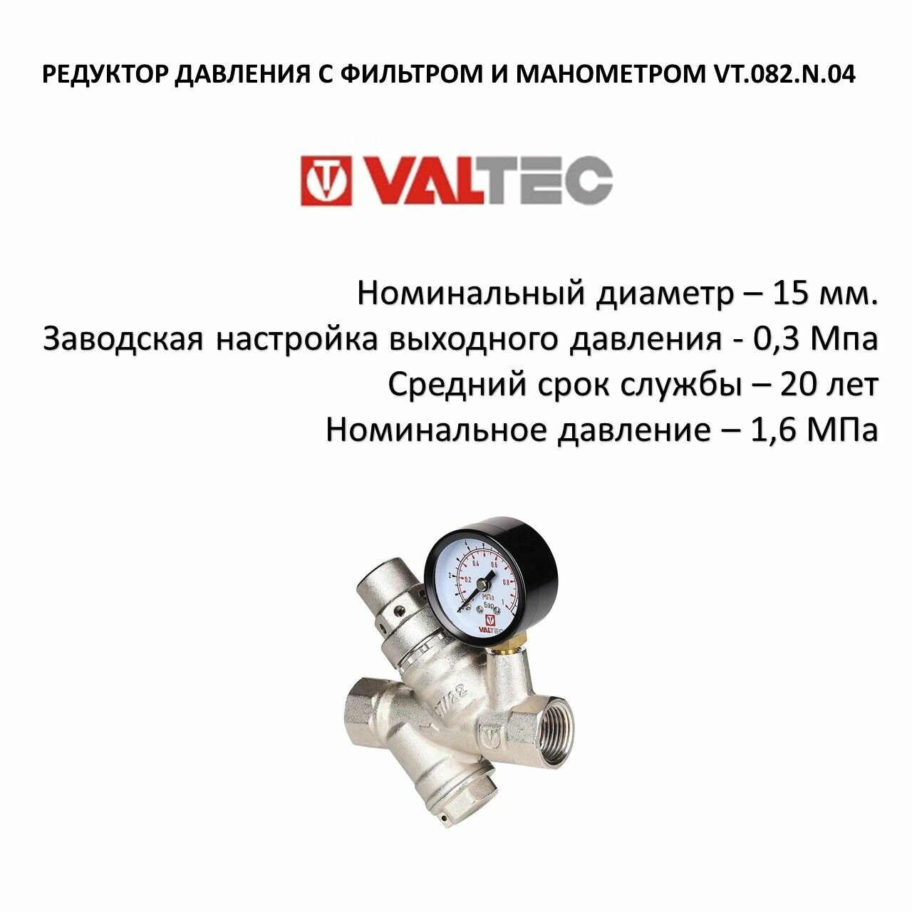 VT.082.N.04 Редуктор давления воды VALTEC 1/2" с фильтром и манометром VT.082.N.04