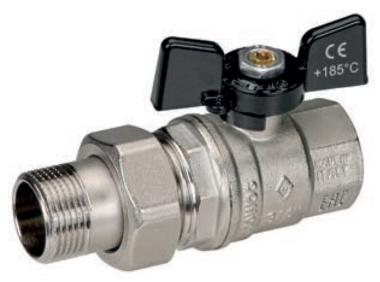 Шаровый кран Bugatti Valvosanitaria "OREGON" 3/4 ВР/НР, муфтовый, с американкой, 2шт