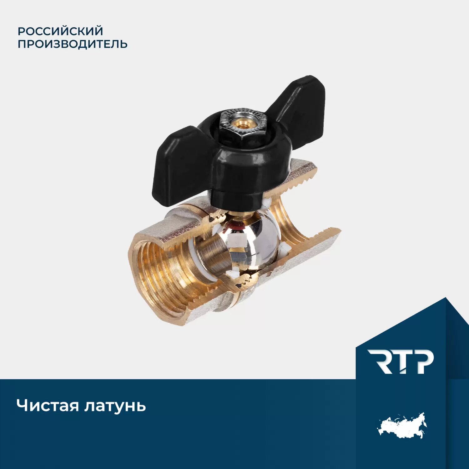 Шаровый кран 1/2 дюйма RTP шаровой латунный вн/вн PN 40 ручка бабочка