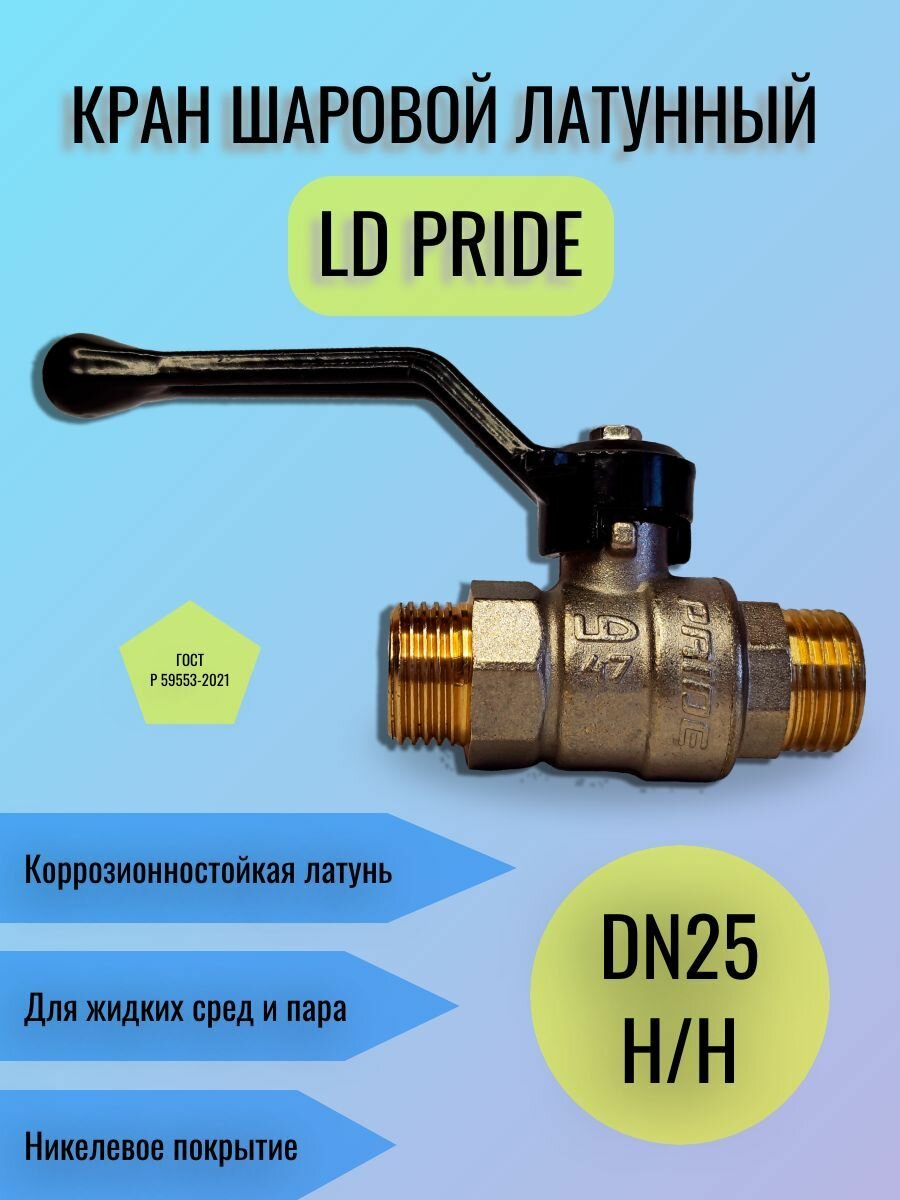 Кран шаровой латунный LD Pride 47.25.H-H.Р Ду 25 Ру 40 рычаг, арт. LD 47.305.25