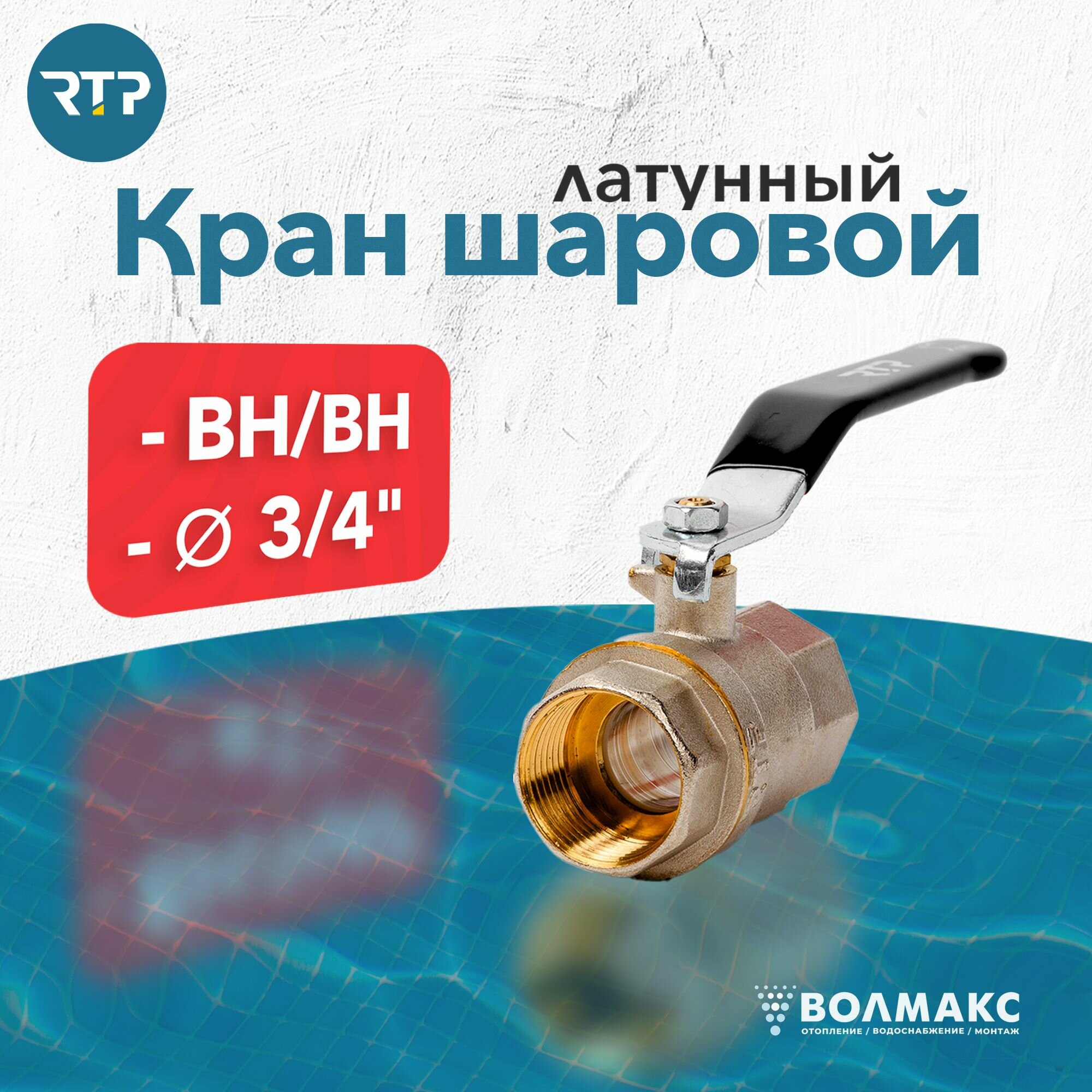 Шаровый кран 3/4 дюйма RTP шаровой латунный вн/вн PN 40 ручка рычаг