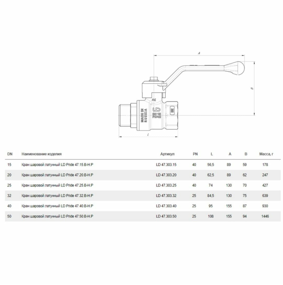 | Дополнительная информация | Шаровой кран LD Pride 47.15. B-Н. Р латунный, внутренняя/наружная резьба, ручка-рычаг, 1/2" LD 47.303.15 |