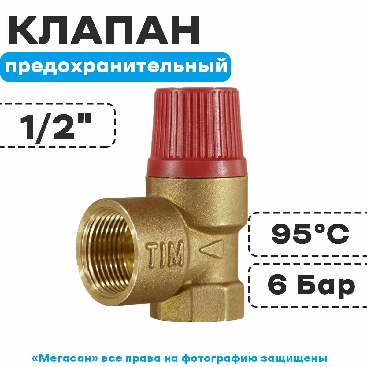 Предохранительный клапан Tim BL22FF-K-6bar муфтовый (ВР/ВР), латунь, 6 бар, Ду 15 (1/2") / Ду 15 (1/2") интересное: