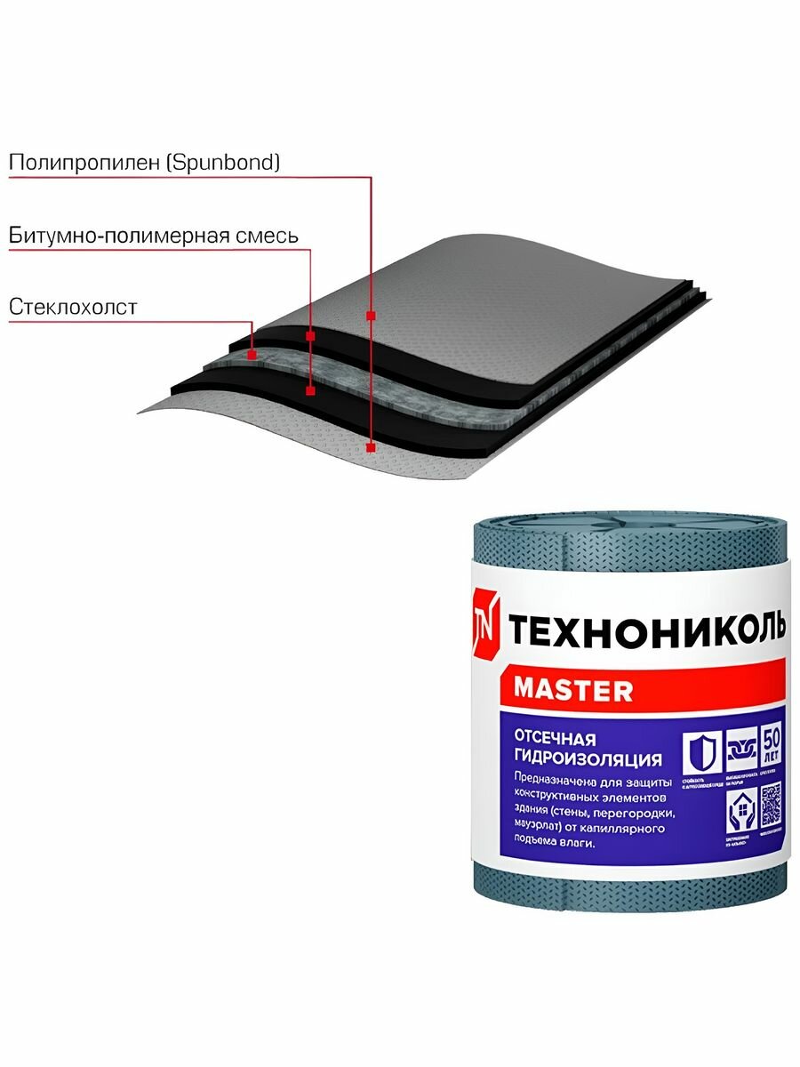 Отсечная гидроизоляция технониколь рулонная 200 мм х 20 м для защиты конструкций зданий