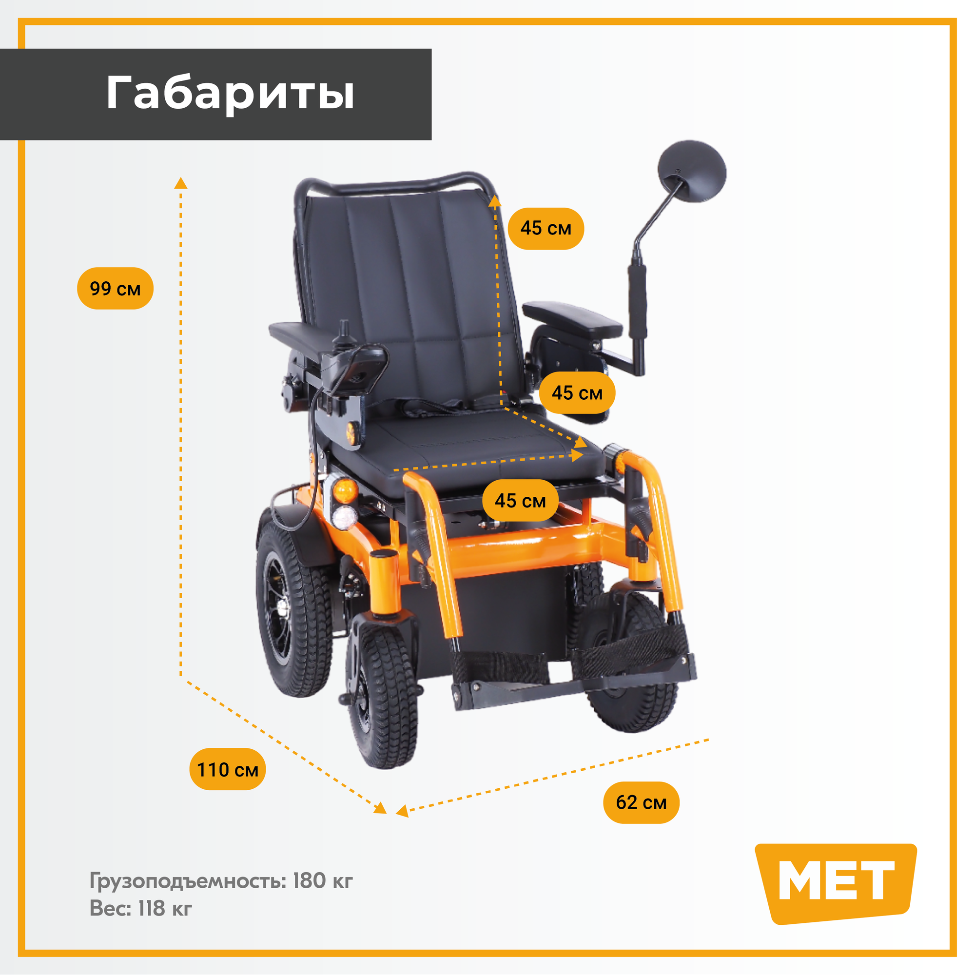 Купить Инвалидная кресло-коляска с электроприводом MET ALLROAD C21 с максимальной скоростью 12 км/ч