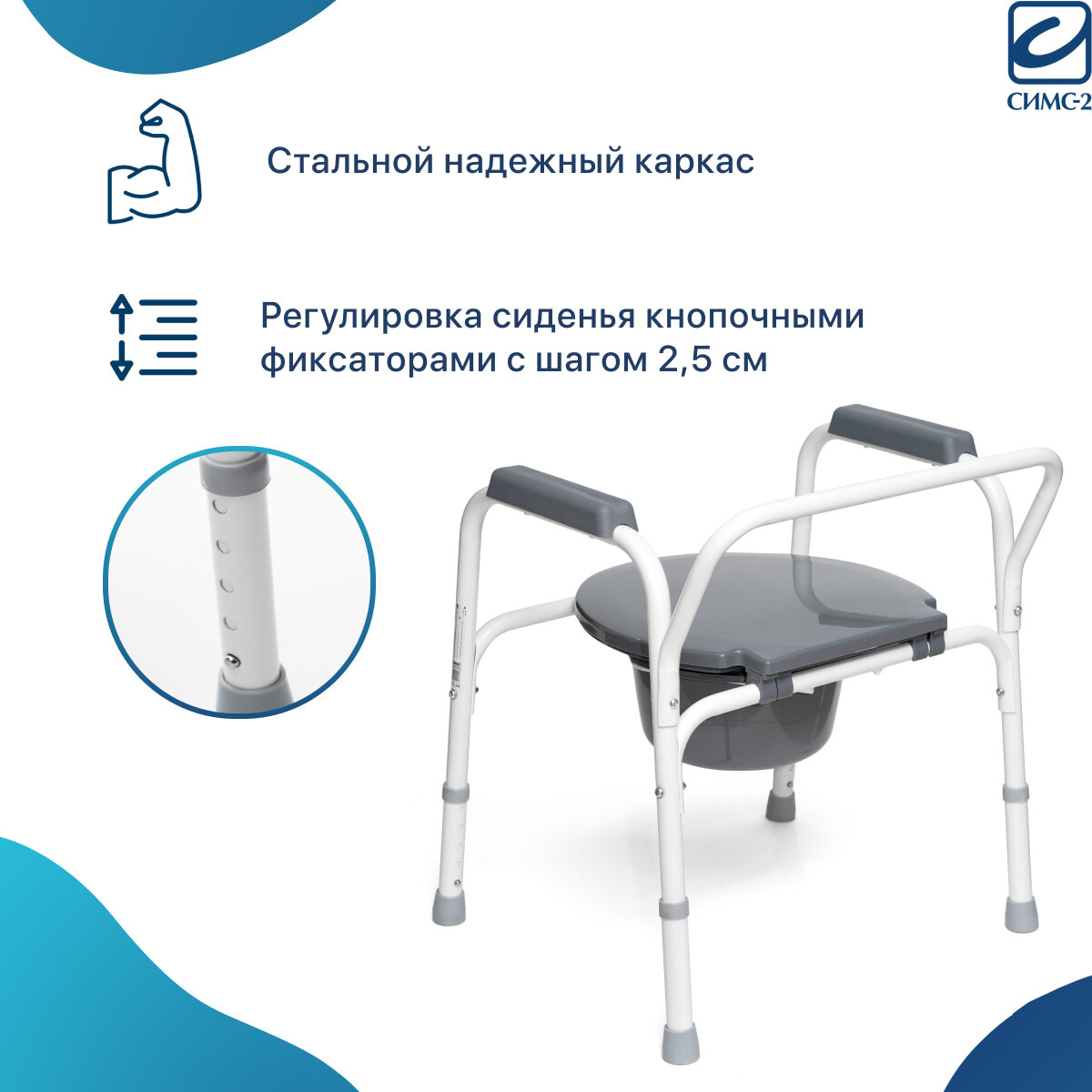 Купить Кресло-туалет для инвалидов и пожилых людей санитарный стул WC100 с регулировкой по высоте поручни для туалета