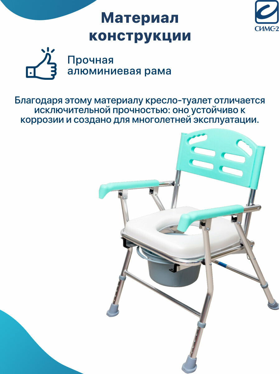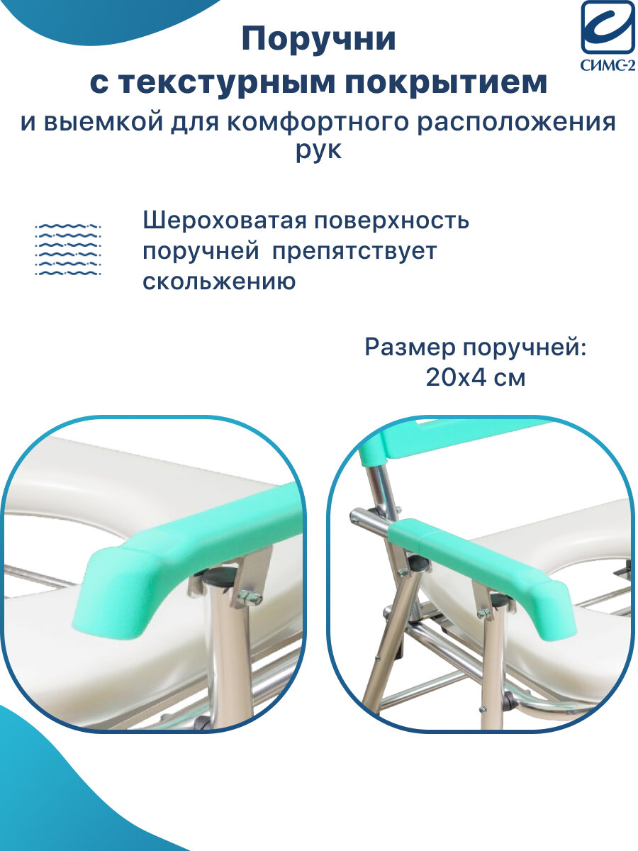 | Особенности | использование в качестве стула / откидываемая крышка / противоскользящие наконечники ножек / противоскользящие подлокотники / регулировка высоты сиденья / съемное санитарное оснащение |