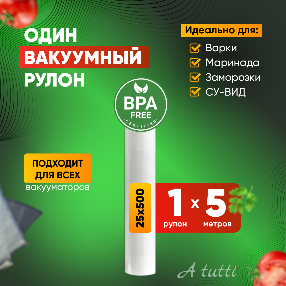 СохранитьРулон для вакууматора 25см *5 метров. Премиальные рифленые пакеты для вакуумной упаковки A tutti интересное: