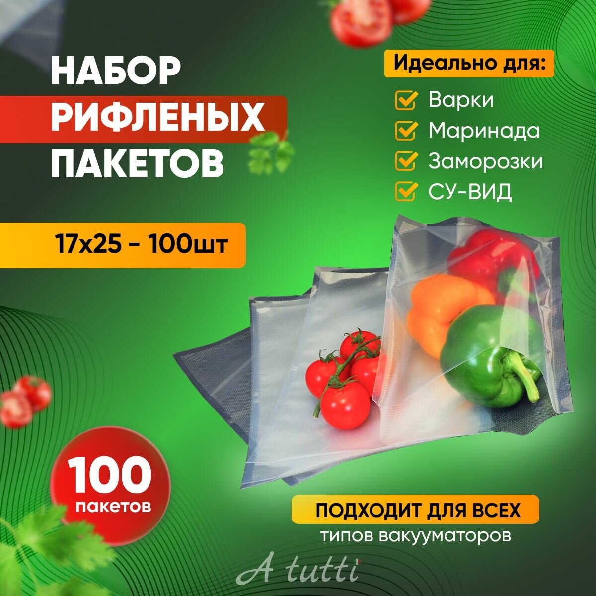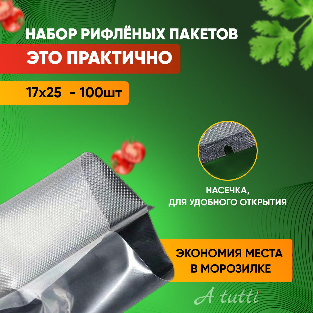 Купить Премиальные рифленые пакеты для вакууматора 17х25см, 100шт. Вакуумные пакеты для продуктов A tutti